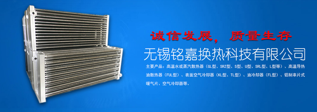 無錫銘嘉換熱科技有限公司是生產散熱器的專業工廠。 產品有:高溫水或蒸汽散熱器、高溫導熱油散熱器表面空氣冷卻器、油冷卻器、鋁制串片式暖氣片、空氣冷卻器、翅片管換熱器